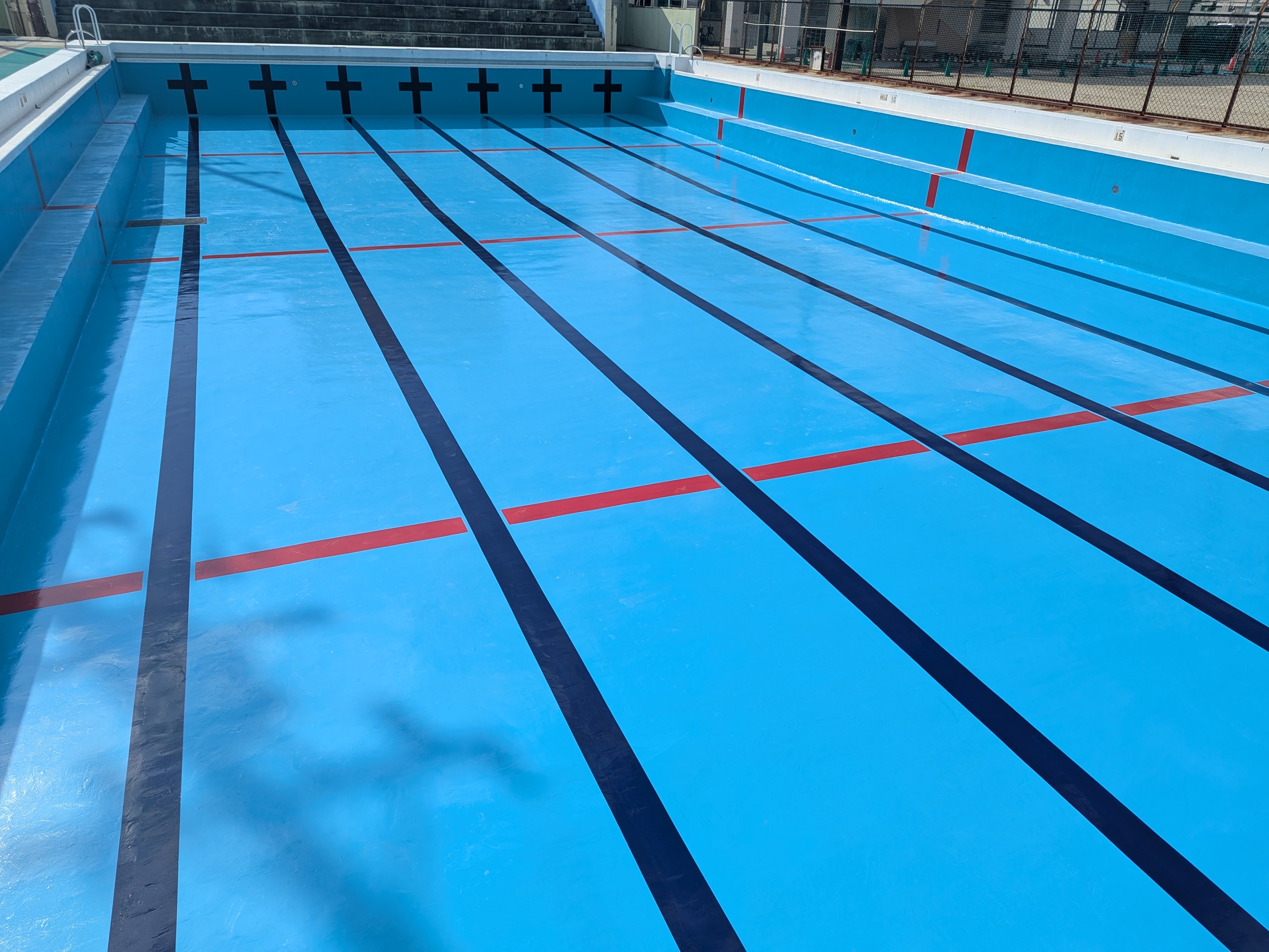 学校プールは地域の防災拠点、防火水利の一つとして位置づけられているので、水を抜いている期間を最小限にとどめる事が必要。