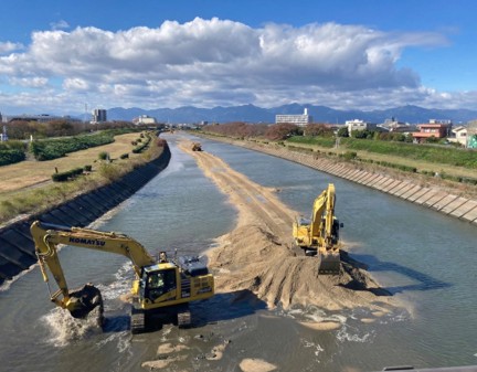 2024年の「二級河川海蔵川河川維持修繕(堆積土砂撤去)工事」は、主に河川内の堆積物による流下能力の低下を解消するこを目的と、四日市市民の水害リスクを緊急的に軽減するための社会課題を解決するために実施された工事です。